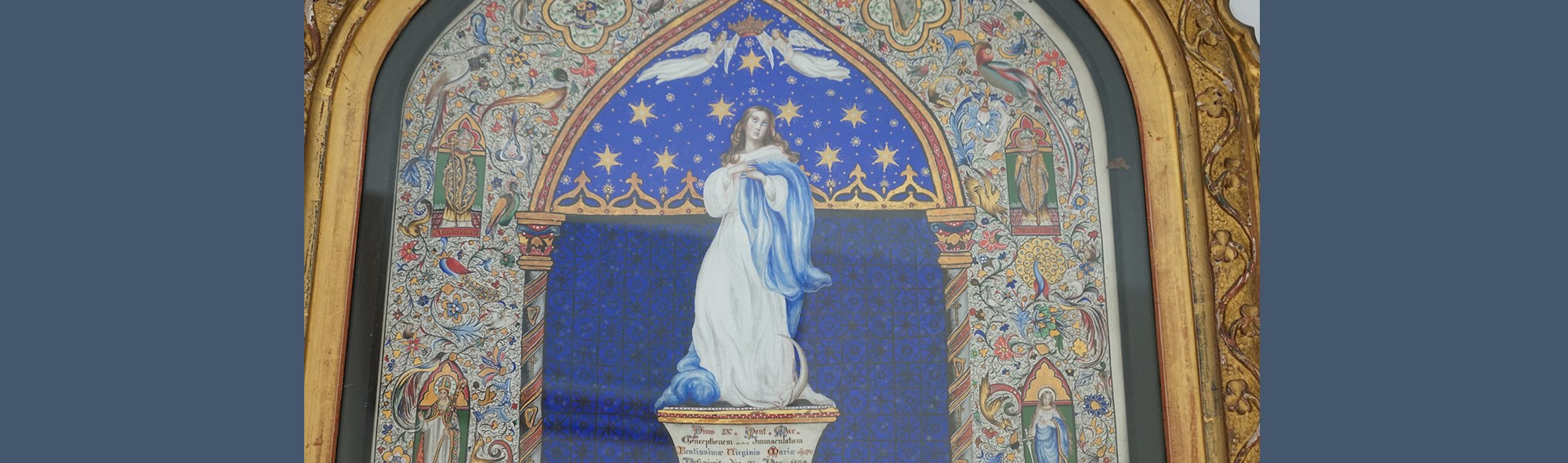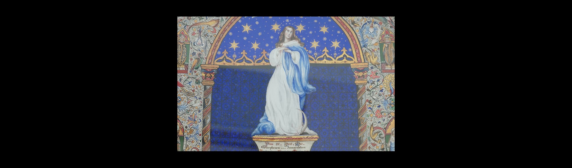 Cullen paid frequent visits to Rome. He took part in the definition of the dogma of the Immaculate Conception of the Blessed Virgin Mary in 1854 (which this illumination commemorates) and with the 18th centenary of the martyrdom of Saints Peter and Paul in 1867, when he stayed at the Irish College.