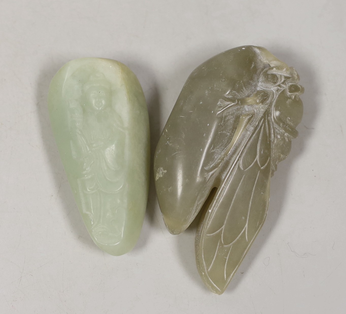 Sale: 200323A Chinese pebble carving and a Chinese soapstone carving of a cicada, 8.5 cm long