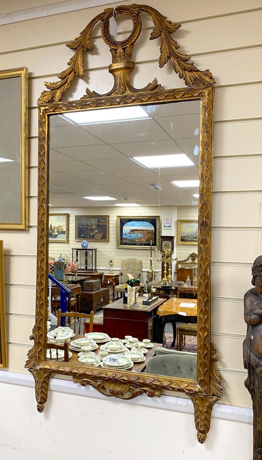 Sale: 200323An 18th century style giltwood and composition wall mirror, width 64cm, height 128cm