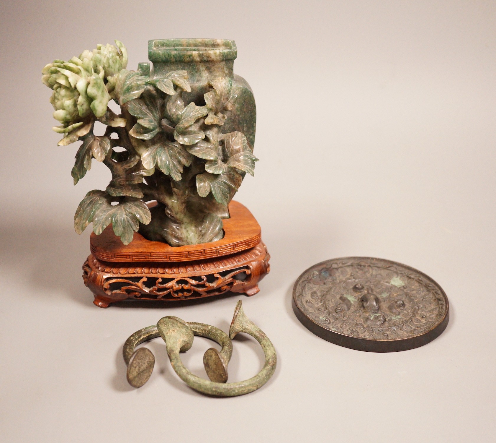 Sale: 050922A pair of cut ruby flashed glass decanters, late Georgian emerald green glass decanter, and four other items