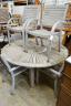 Sale: 230522An Empire style parcel gilt and faux malachite marble top console table with concave undertier, width 154cm, depth 65cm, height 80cm