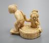 Sale: 140322A mid 19th century Chinese Cantonese lacquer workbox with with carved Ivory sewing accessories to the interior, 37cm wide
